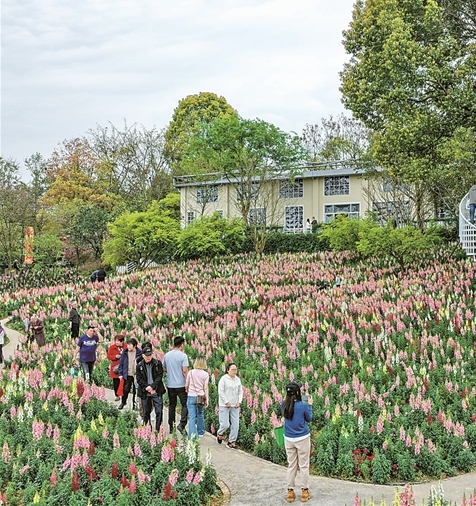 游客在重庆市巴南区二圣镇集体村云林天乡景区踏青游玩。新华社发